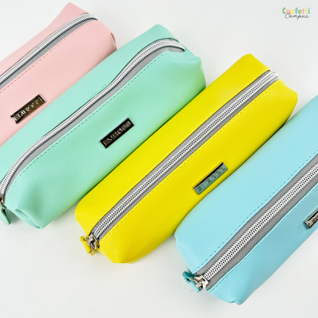 Die Ancor Emboss Federmappe begeistert mit einem puristischen Design in vier zarten Pastelltönen. Eine dezente Metallplakette mit der Aufschrift „Emboss“ setzt einen edlen Akzent und verleiht dem Mäppchen eine moderne, elegante Note. Ein silberfarbener Reißverschluss aus Metall sorgt für ein zuverlässiges Öffnen und Schließen. Die praktische Stofflasche erleichtert den täglichen Gebrauch – ideal für Schule, Uni oder Büro.
