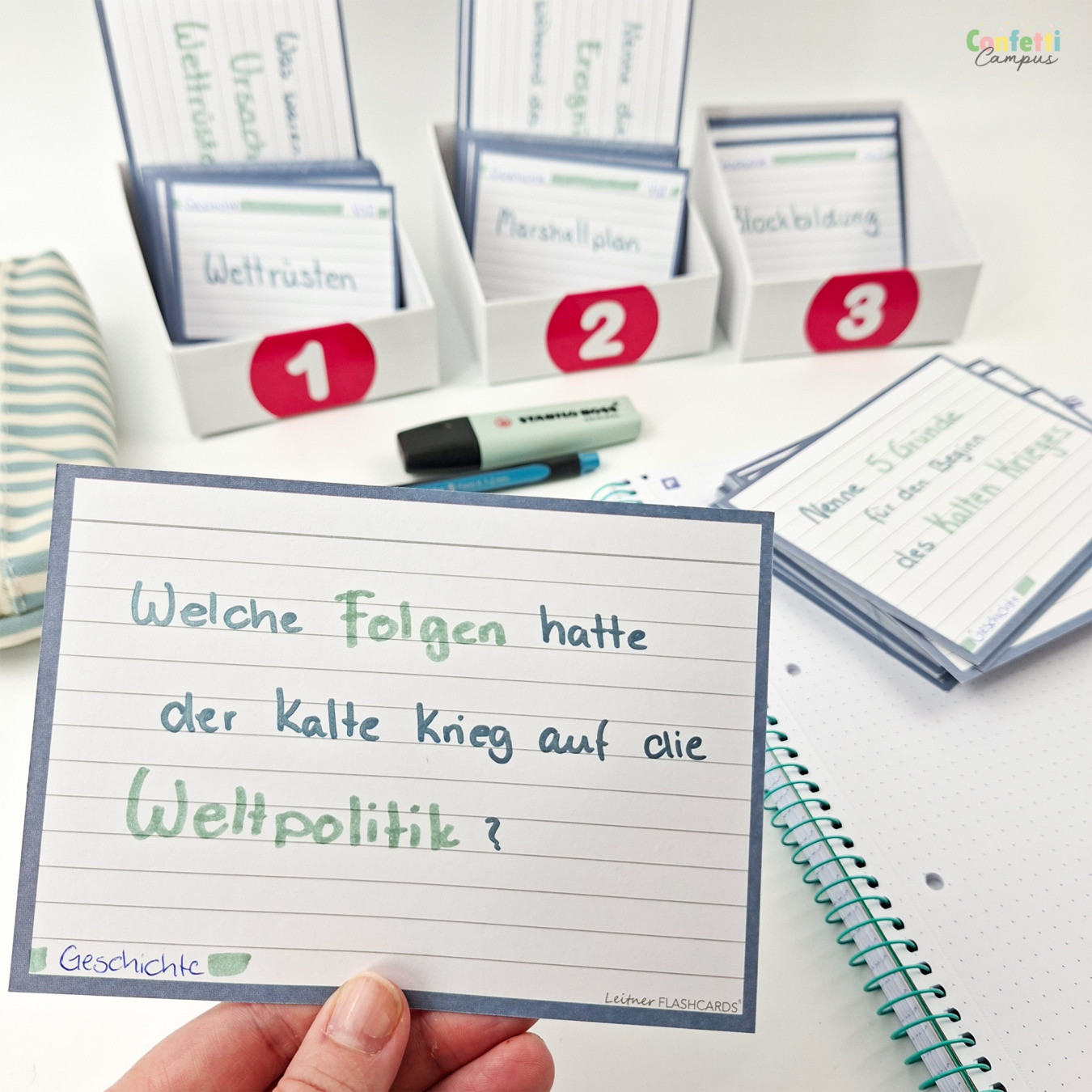Wähle die für dich passenden Formte und Farben der festen Leitner Flashcards