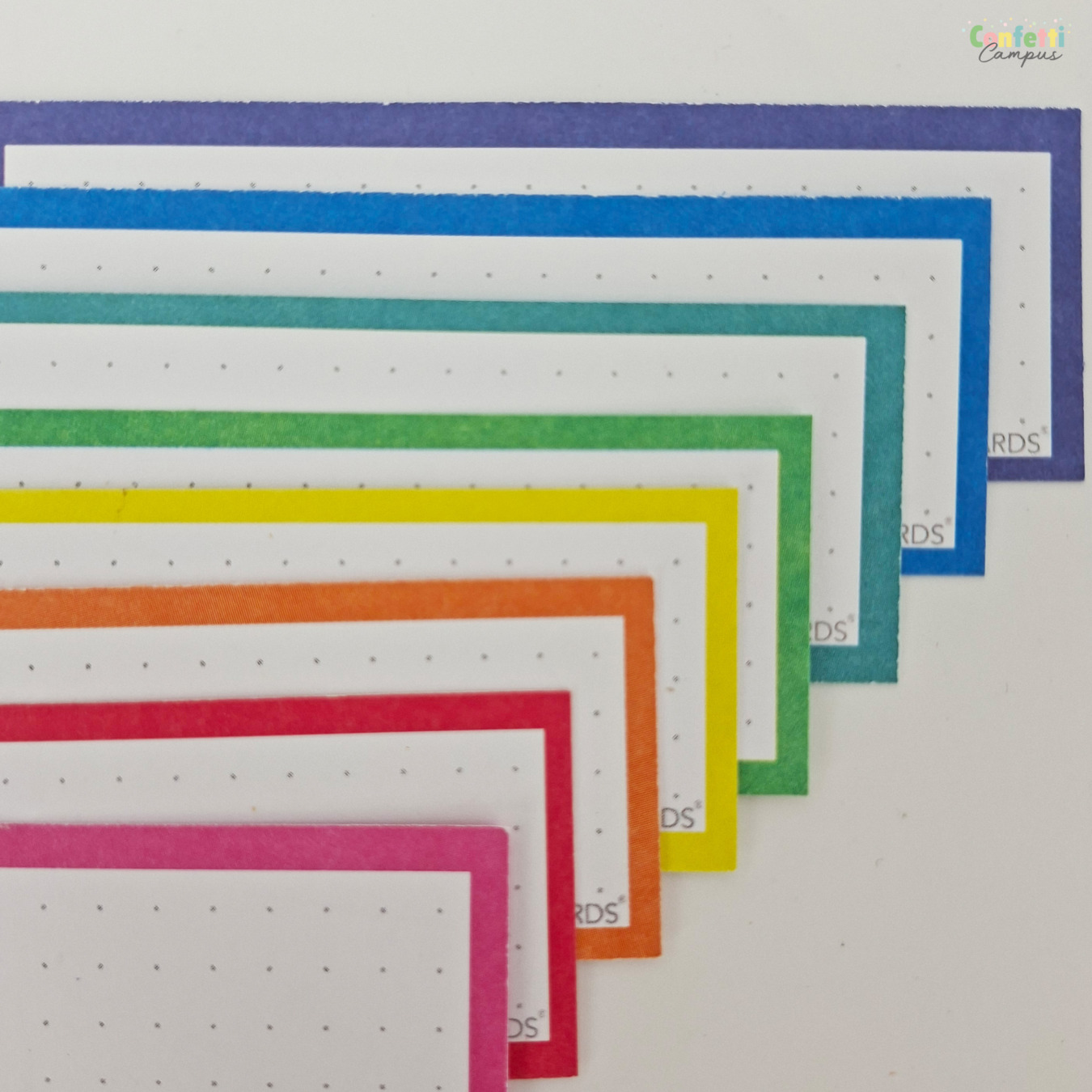 Die festen Karteikarten aus FSC Papier kommen in den Größen A7 (Standard), A6, A5 und Halb (Vokabelkarten).