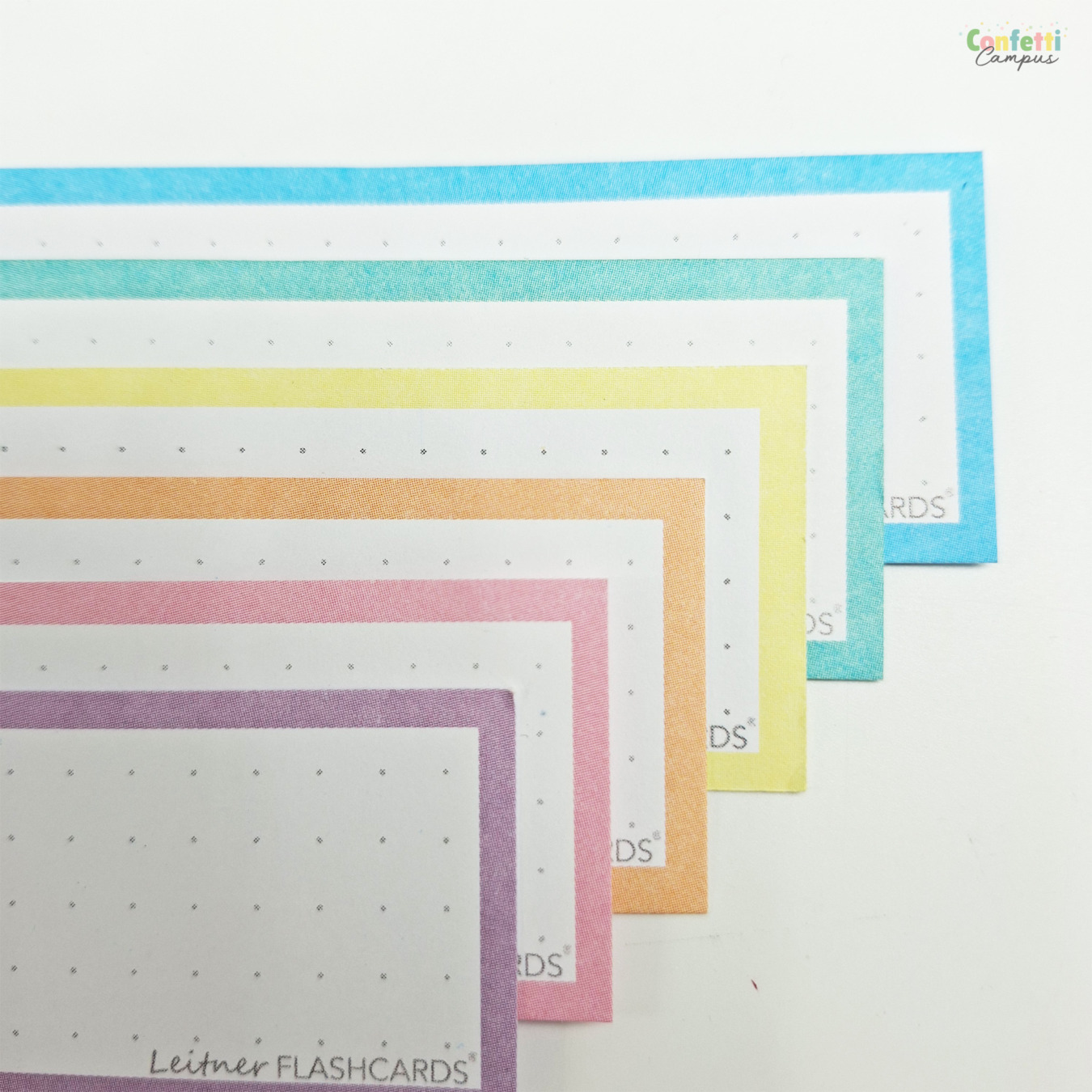 Die Leitner Flashcards Karteikarten können entweder gelocht werden (Perforation) und danach an einem Ring befestigt werden oder im Leitner Karteikartensystem eingeordnet werden.